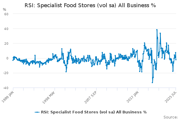 Download this time seriesRSI: Specialist Food Stores (vol sa) All Business %