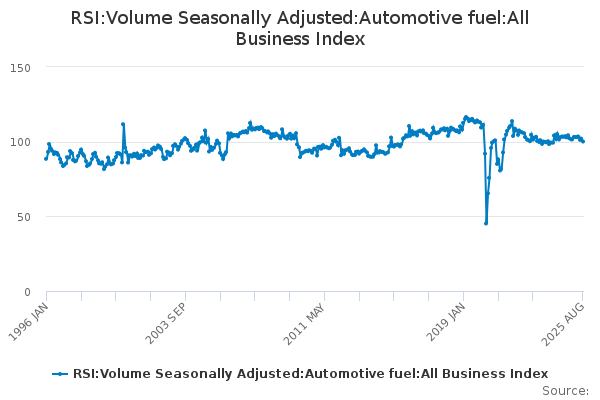 Download this time seriesRSI:Volume Seasonally Adjusted:Automotive fuel:All Business Index