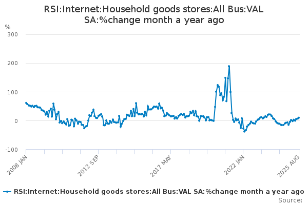 Download this time seriesRSI:Internet:Household goods stores:All Bus:VAL SA:%change month a year ago