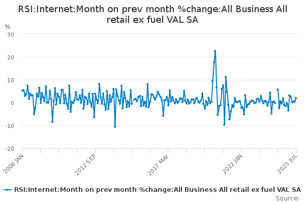 Download this time seriesRSI:Internet:Month on prev month %change:All Business All retail ex fuel VAL SA
