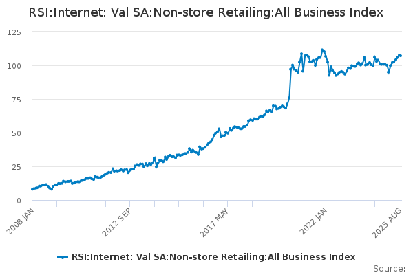 Download this time seriesRSI:Internet: Val SA:Non-store Retailing:All Business Index
