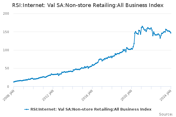 Download this time seriesRSI:Internet: Val SA:Non-store Retailing:All Business Index