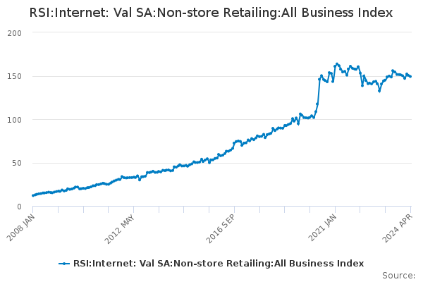 Download this time seriesRSI:Internet: Val SA:Non-store Retailing:All Business Index