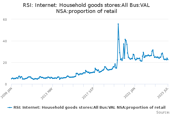 Download this time seriesRSI: Internet: Household goods stores:All Bus:VAL NSA:proportion of retail