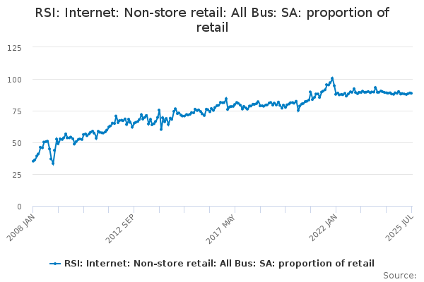 Download this time seriesRSI: Internet: Non-store retail: All Bus: SA: proportion of retail