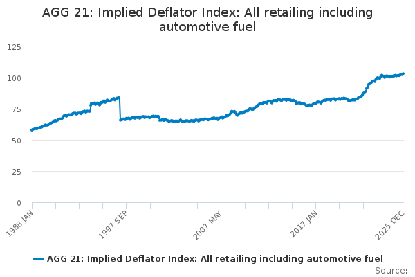 Download this time seriesAGG 21: Implied Deflator Index: All retailing including automotive fuel