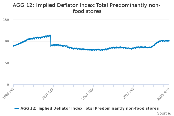 Download this time seriesAGG 12: Implied Deflator Index:Total Predominantly non-food stores