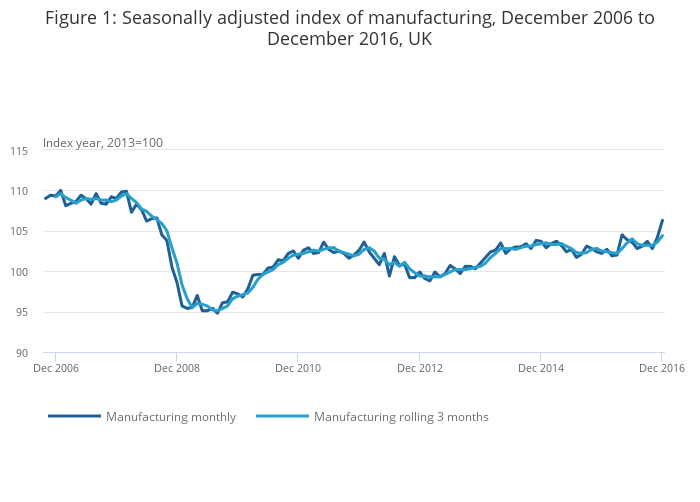 Figure 1: Seasonally adjusted index of manufacturing, December 2006 to December 2016, UK