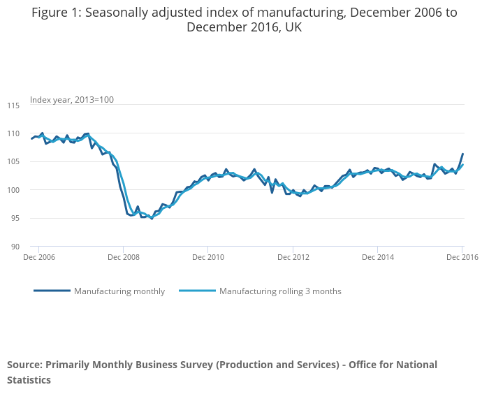 Short-term indicators economic commentary was published alongside this release, presenting new information on economic conditions in December 2016, with data available for output in production, construction and the trade balance.