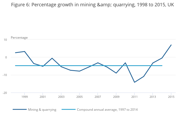 Figure 6: Percentage growth in mining & quarrying, 1998 to 2015, UK