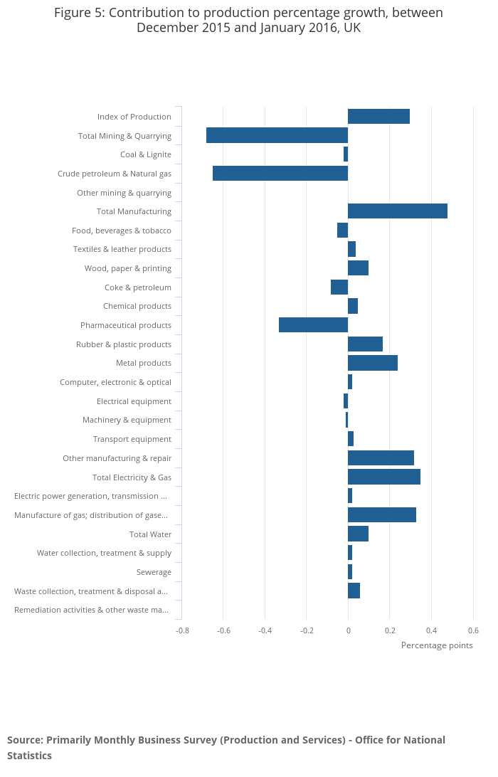 Download this chart Figure 5: Contribution to production percentage growth, between December 2015 and January 2016, UK