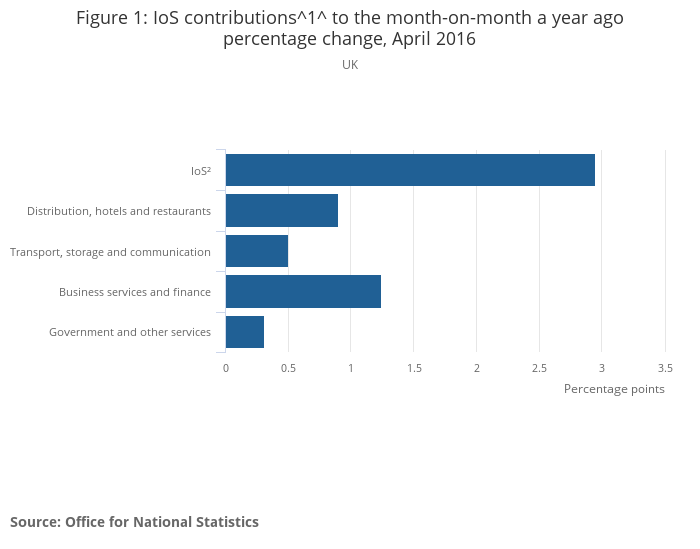 Download this chart Figure 1: IoS contributions^1^ to the month-on-month a year ago percentage change, April 2016
