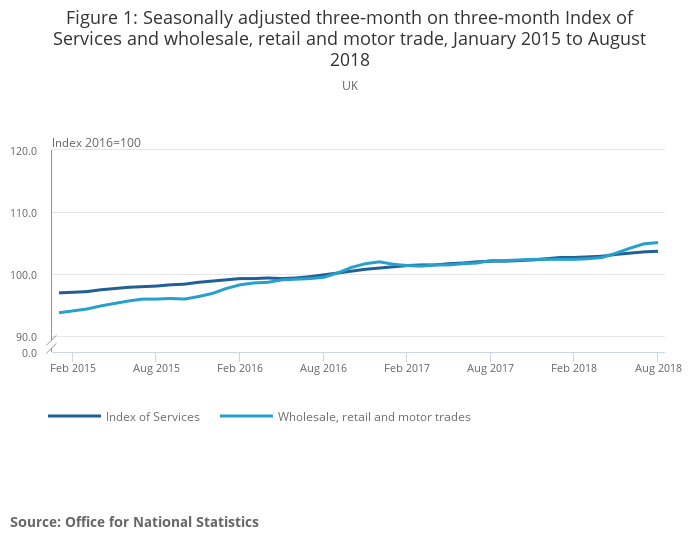 Services output showed no growth to one decimal place in August 2018, following a rise of 0.3% in July 2018.