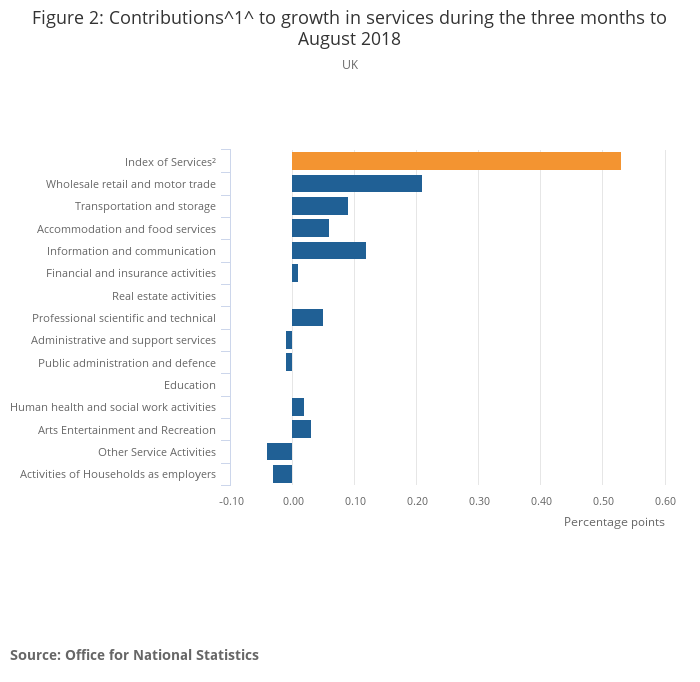 Figure 4: Contributions1 to growth in services between July 2018 and August 2018