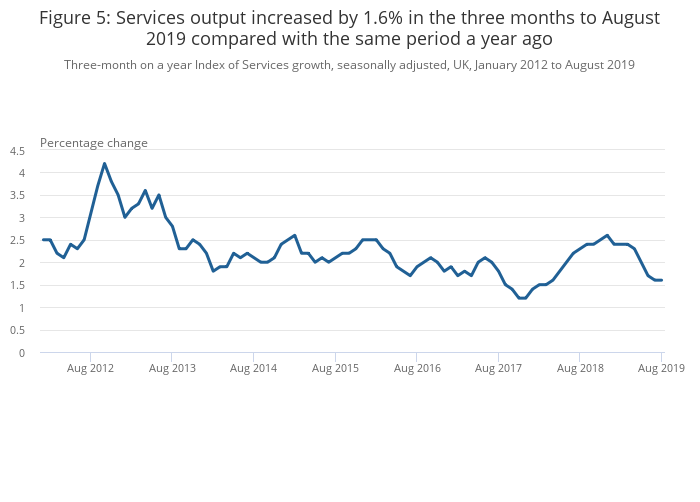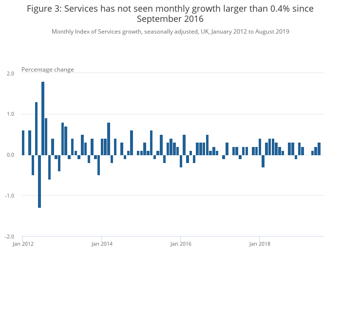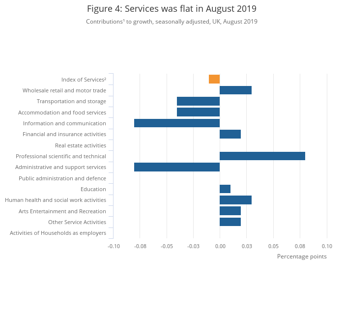 Services output showed no growth to one decimal place in August 2019.