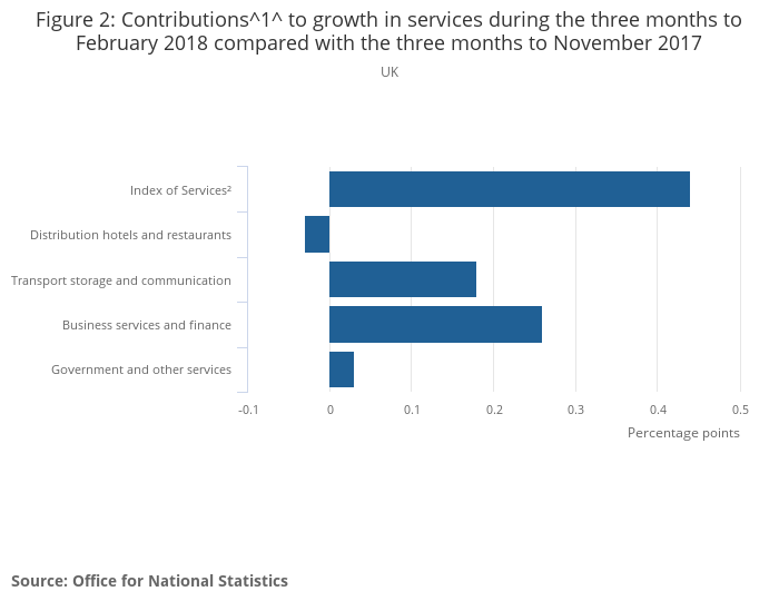 Download this chart Figure 2: Contributions^1^ to growth in services during the three months to February 2018 compared with the three months to November 2017