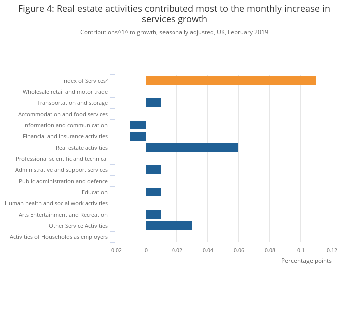 Download this chart Figure 2: Real estate activities contributed most to growth in services in the three months to February 2019