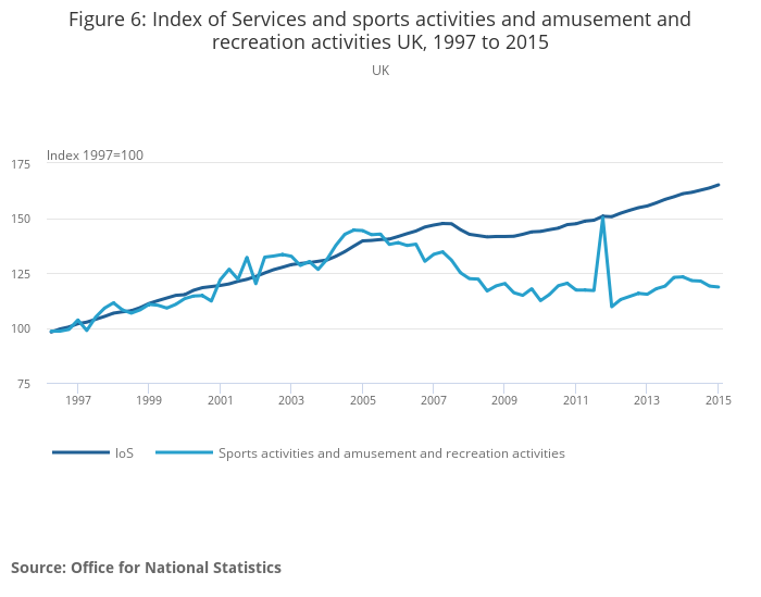 Figure 6: Index of Services and sports activities and amusement and recreation activities UK, 1997 to 2015