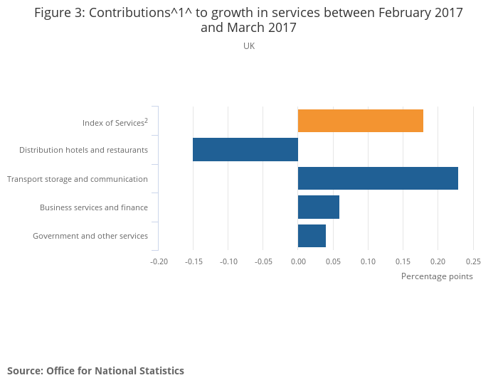 Figure 3: Contributions1 to growth in services between February 2017 and March 2017