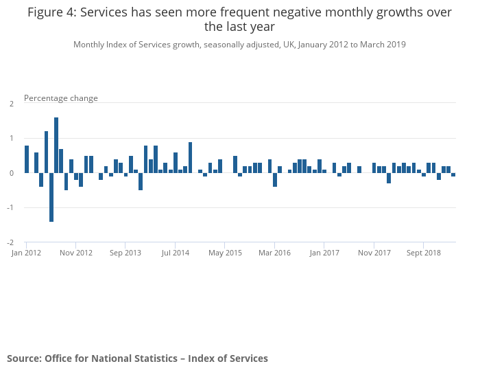 Download this chart Figure 4: Services has seen more frequent negative monthly growths over the last year