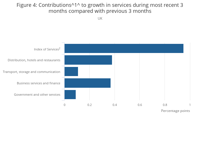 Figure 4: Contributions1 to growth in services during most recent 3 months compared with previous 3 months