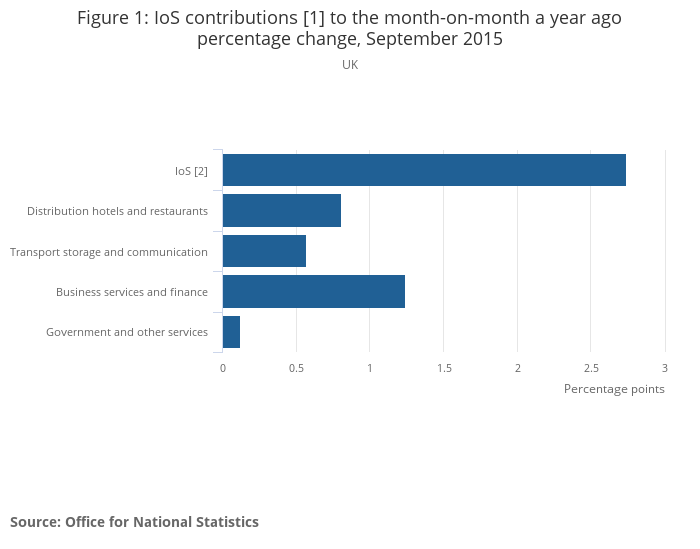 Figure 1: IoS contributions [1] to the month-on-month a year ago percentage change, September 2015