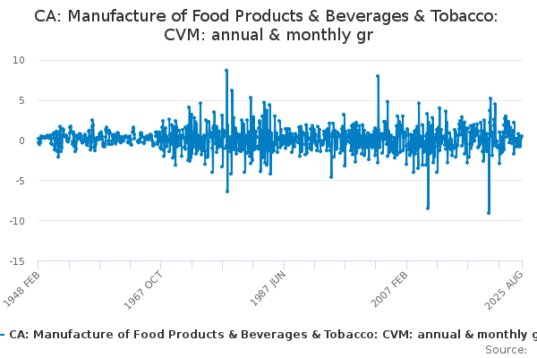 Download this time seriesCA: Manufacture of Food Products & Beverages & Tobacco: CVM: annual & monthly gr