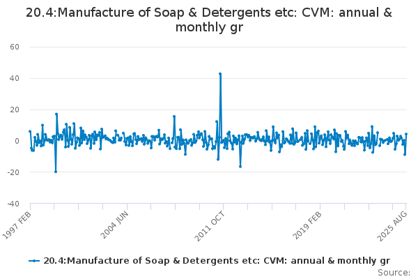 Download this time series20.4:Manufacture of Soap & Detergents etc: CVM: annual & monthly gr
