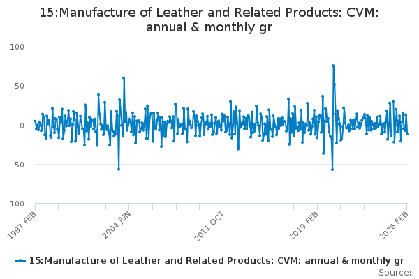 Download this time series15:Manufacture of Leather and Related Products: CVM: annual & monthly gr