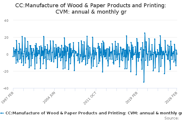 Download this time seriesCC:Manufacture of Wood & Paper Products and Printing: CVM: annual & monthly gr