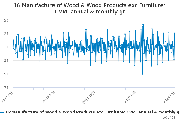 Download this time series16:Manufacture of Wood & Wood Products exc Furniture: CVM: annual & monthly gr