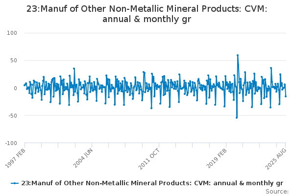 Download this time series23:Manuf of Other Non-Metallic Mineral Products: CVM: annual & monthly gr