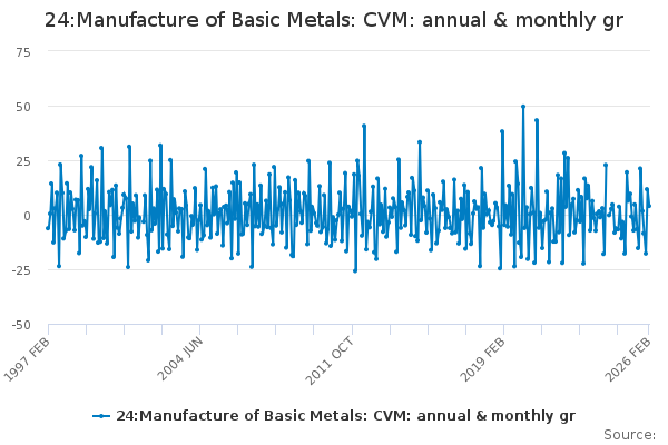 Download this time series24:Manufacture of Basic Metals: CVM: annual & monthly gr