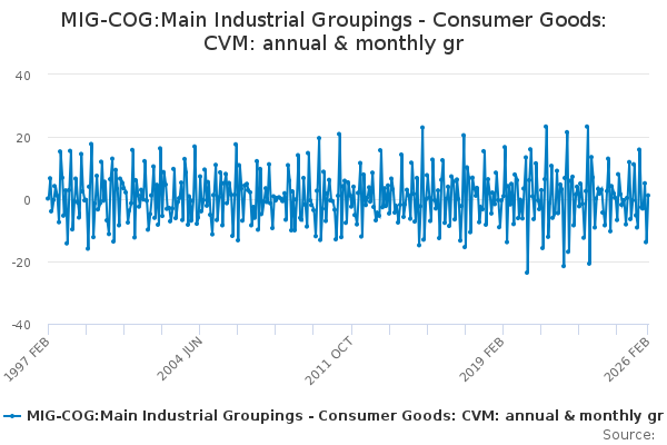 Download this time seriesMIG-COG:Main Industrial Groupings - Consumer Goods: CVM: annual & monthly gr