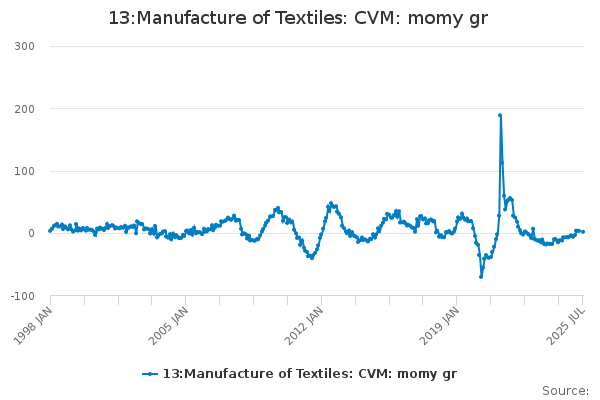 Download this time series13:Manufacture of Textiles: CVM: momy gr