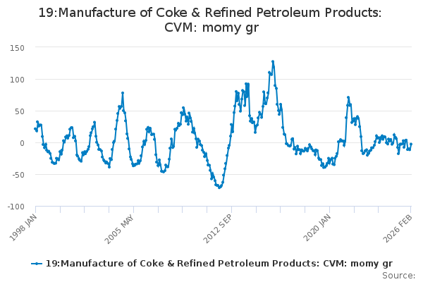 Download this time series19:Manufacture of Coke & Refined Petroleum Products: CVM: momy gr