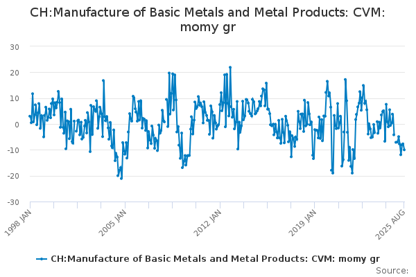 Download this time seriesCH:Manufacture of Basic Metals and Metal Products: CVM: momy gr