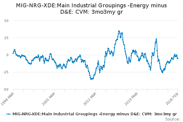 Download this time seriesMIG-NRG-XDE:Main Industrial Groupings -Energy minus D&E: CVM: 3mo3my gr