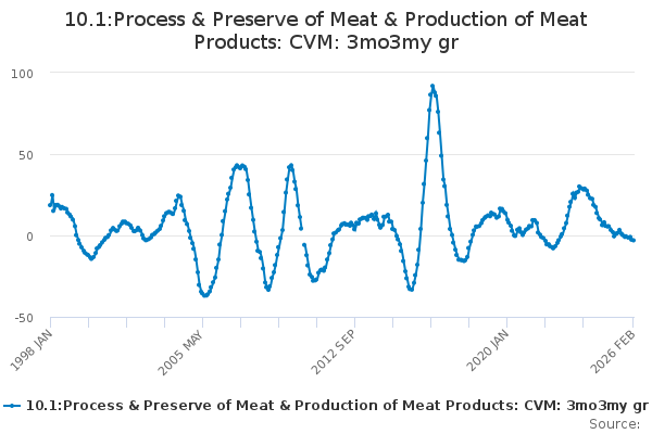 Download this time series10.1:Process & Preserve of Meat & Production of Meat Products: CVM: 3mo3my gr