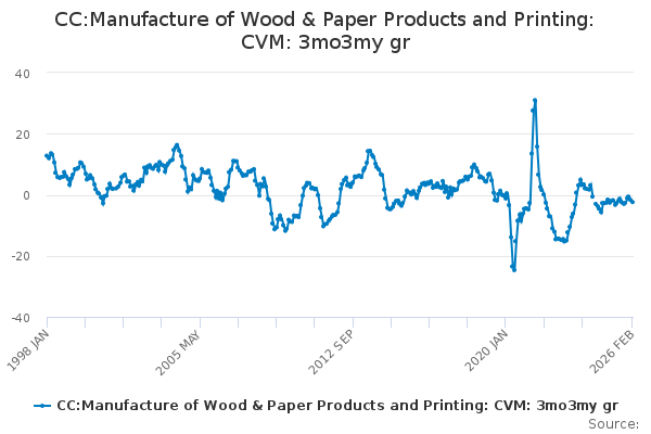 Download this time seriesCC:Manufacture of Wood & Paper Products and Printing: CVM: 3mo3my gr