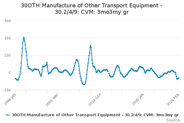 Download this time series30OTH:Manufacture of Other Transport Equipment - 30.2/4/9: CVM: 3mo3my gr