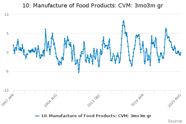 Download this time series10: Manufacture of Food Products: CVM: 3mo3m gr