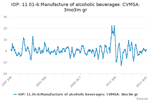 Download this time seriesIOP: 11.01-6:Manufacture of alcoholic beverages: CVMSA: 3mo3m gr