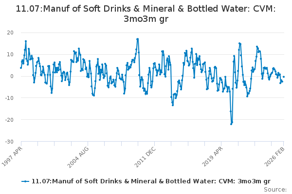 Download this time series11.07:Manuf of Soft Drinks & Mineral & Bottled Water: CVM: 3mo3m gr