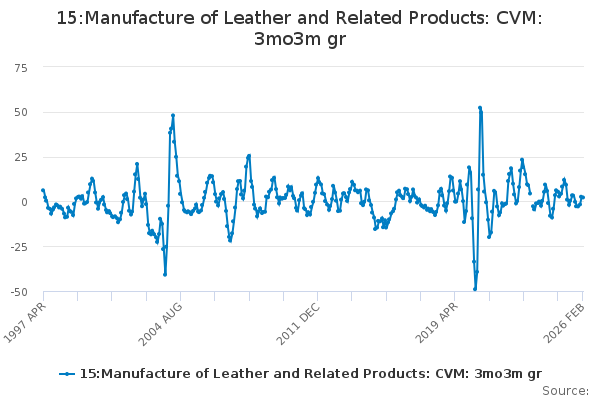 Download this time series15:Manufacture of Leather and Related Products: CVM: 3mo3m gr