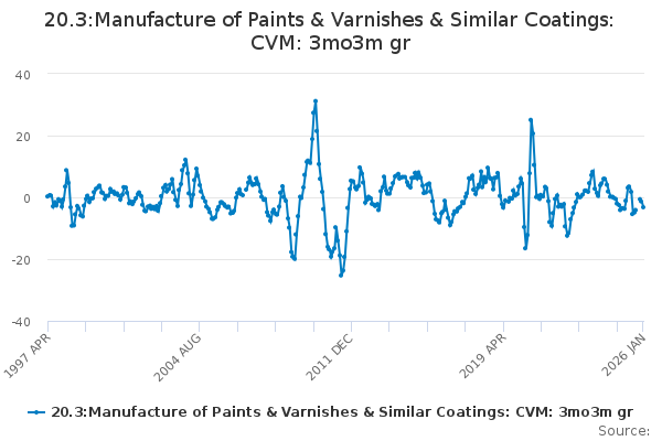 Download this time series20.3:Manufacture of Paints & Varnishes & Similar Coatings: CVM: 3mo3m gr