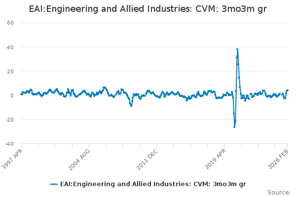 Download this time seriesEAI:Engineering and Allied Industries: CVM: 3mo3m gr
