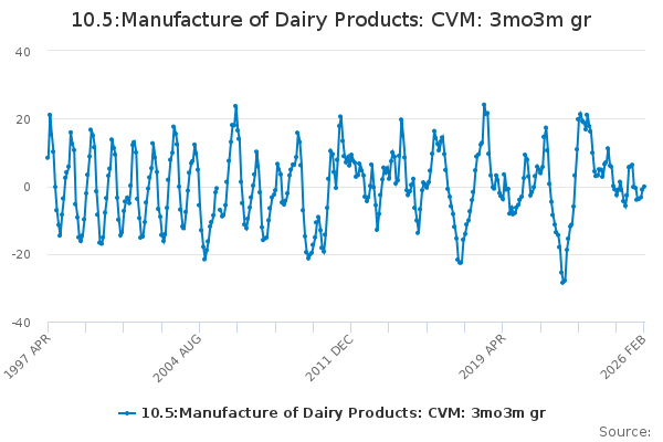 Download this time series10.5:Manufacture of Dairy Products: CVM: 3mo3m gr