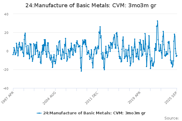 Download this time series24:Manufacture of Basic Metals: CVM: 3mo3m gr