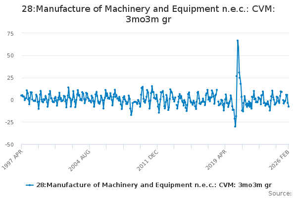 Download this time series28:Manufacture of Machinery and Equipment n.e.c.: CVM: 3mo3m gr